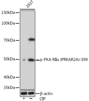 A phospho specific peptide corresponding to residues surrounding S99 of human PRKAR2A/PKR2 |
