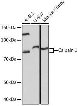 The calpains, calcium-activated neutral proteases, are nonlysosomal, intracellular cysteine proteases. The mammalian calpains include ubiquitous, stomach-specific, and muscle-specific proteins. The ubiquitous enzymes consist of heterodimers with distinct large, catalytic subunits associated with a common small, regulatory subunit. This gene encodes the large subunit of the ubiquitous enzyme, calpain 1. Several transcript variants encoding two different isoforms have been found for this gene. [provided by RefSeq, Nov 2010] |